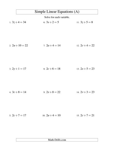 12 Linear Equations Worksheets 8th Grade /
