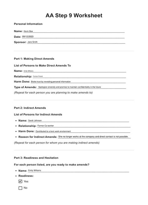 You may also use a 12 step workbook: Before starting with the worksheet, it's important to understand its purpose. The questions here will help. You may also use a 12 step workbook: Web how to use the aa step 9 worksheet: