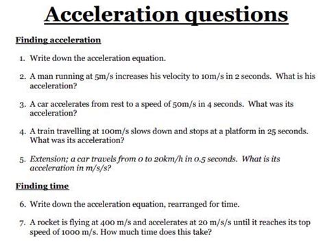 Acceleration Questions Worksheet. An ambulance is currently traveling at 15m/s, and is accelerating with a constant.