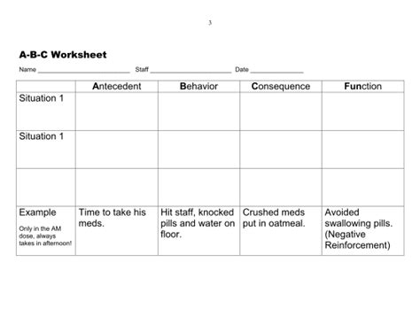Antecedent Behavior Consequence Worksheet. Web antecedents are the contexts or challenging behavior is any events that occur immediately behavior that interferes with.