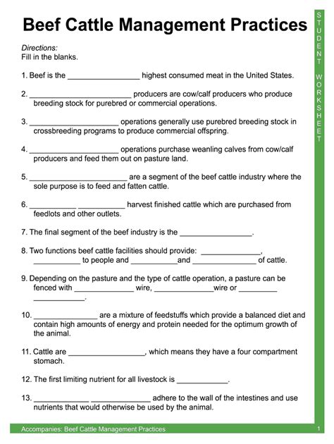 Beef Cattle Management Practices Worksheet. Web you will be able to print handouts about beef cattle body condition scoring, breeds and reproduction planning, and grazing. Safety, ease to people and safety and ____________ of cattle.