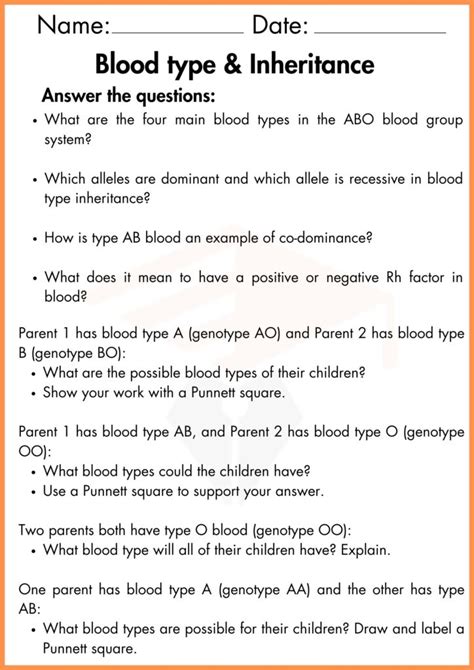 Blood Type And Inheritance Worksheet