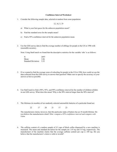 Confidence Interval Worksheet. Confidence intervals calculate the confidence interval for one item. Web find the point estimate for the population mean.