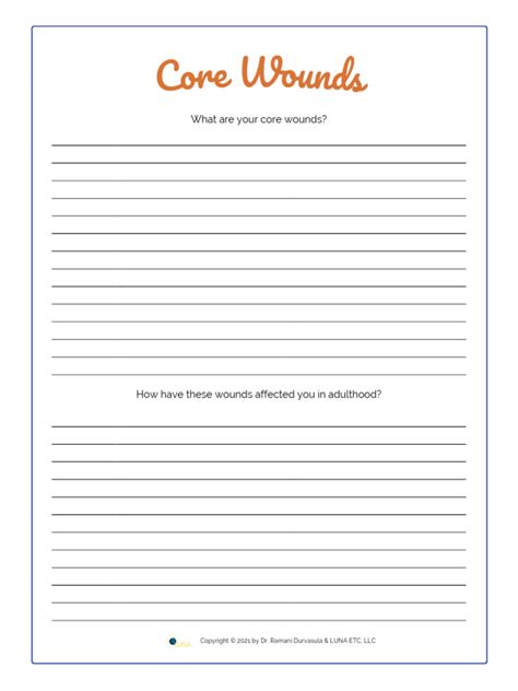 Core Wounds Worksheet. Web ask yourself what your core wounds have cost you. The first step to reprogramming your core wounds is.