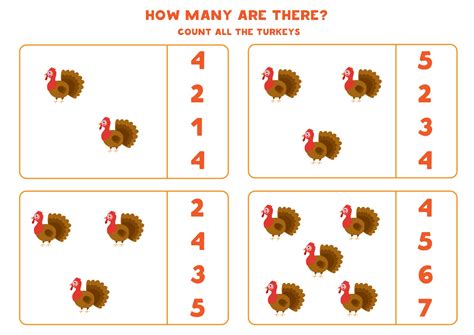Counting Turkeys Worksheet. Have students count turkeys and pies against a.