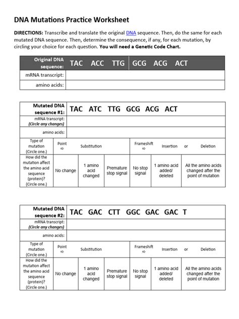 mutations worksheet answer key Practices worksheets, Word problem