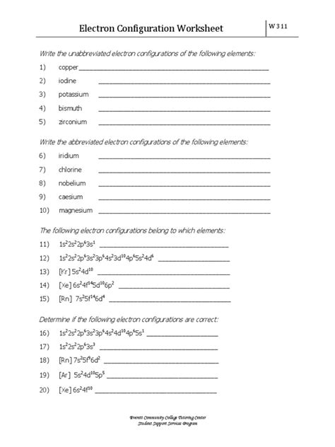 Electron Configuration Worksheet W311. Web technique for writing electron configurations is to use the periodic table as your guide. Web the following electron configurations belong to which elements: