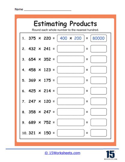 Estimating Products Worksheet. For instance, if asked to estimate the product of 23 and 47, you might round 23. Web about these 15 worksheets basic estimation.