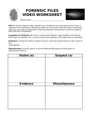 Forensic Files Worksheet. This one page forensics true crime response sheet will work with almost any true crime video or.