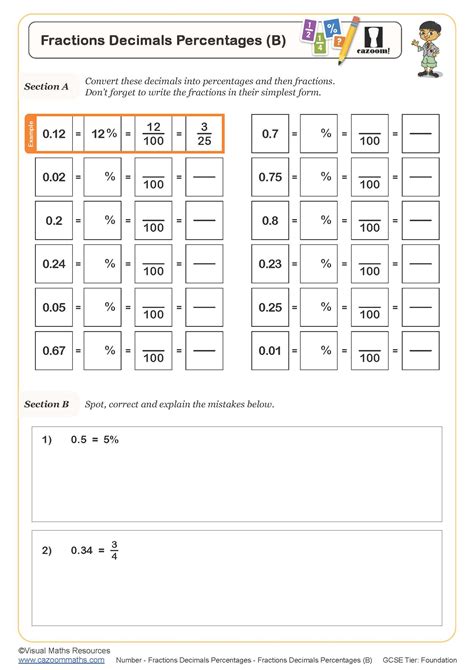 12 Best Images of Printable Fraction Decimal Percent Worksheet