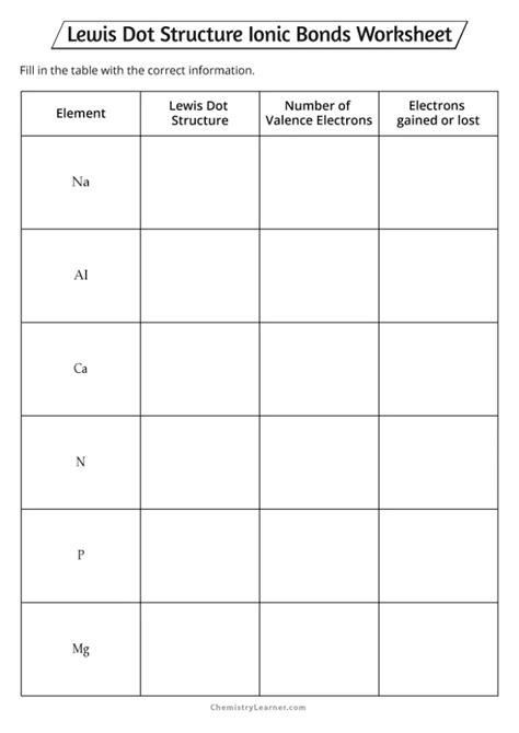 Lewis Dot Structure Ionic Bonds Worksheet