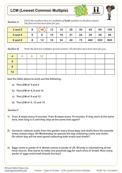 Lowest Common Multiple Worksheet. Web a collection of printable worksheets on lcm for students of grade 5 through grade 8. The exercises cover finding common.