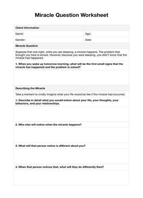 Miracle Question Worksheet. Web 3 examples of the miracle question in action; Here is a clear example of how to administer the miracle question.