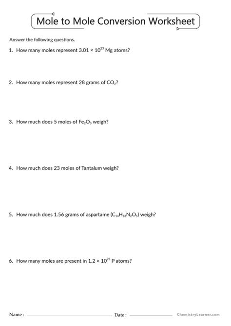 Erik Sheet Mole Conversions Worksheet Chemistry 1b Answer Key Words Below