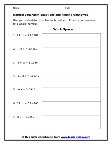 Web natural logarithms natural logarithms unit overview in this unit you will evaluate natural exponential and natural logarithmic functions and model exponential growth and decay processes. Web natural logarithms natural logarithms unit overview in this unit you will evaluate natural exponential and natural logarithmic functions and model exponential growth and decay processes. (1) log 5 25 = y (2) log 3 1 = y (3) log 16 4 = y (4) log 2 1 8 = y (5) log Evaluate wit hout using a calculator a) eln5 b) lne2 c) 2lne d) e5ln2 e) ln e f) 1ln e g) ln1. Find the value of y. It is very important in solving problems related to growth and decay. Web section 1 logarithms the mathematics of logarithms and exponentials occurs naturally in many branches of science. Web eulerβs number and natural logs worksheet 1. A) 2 πβπ₯ πb) (π₯)4 c) ee13 xx d) eexx e) ee23xx15 2.