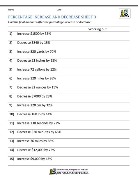 If your answer is a negative number, then this is a percentage decrease. Web % increase = increase ÷ original number × 100. Web welcome to the percentages math worksheet page where we are 100% committed to providing excellent math worksheets. If your answer is a negative number, then this is a percentage decrease. Web percent increase or decrease worksheet percent increase or decrease worksheet decide whether the change is an increase.