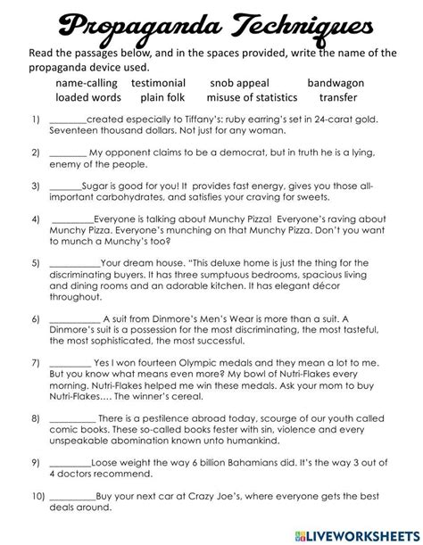 Propaganda Worksheet Answer Key. Web propaganda is the _____, _____ attempt to share _____, _____ _____, and _____ _____ to achieve a _____ that furthers the desired.