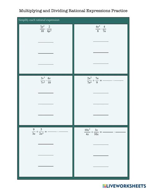 Rational Expression Worksheet #6 Multiplying And Dividing. Multiply or divide, as indicated. Web make note of the restrictions to the domain.