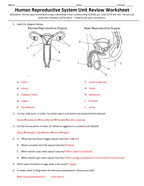 Reproductive System Worksheet Answer Key. Directions for using a printed worksheet: Write the correct answer in the space provided.