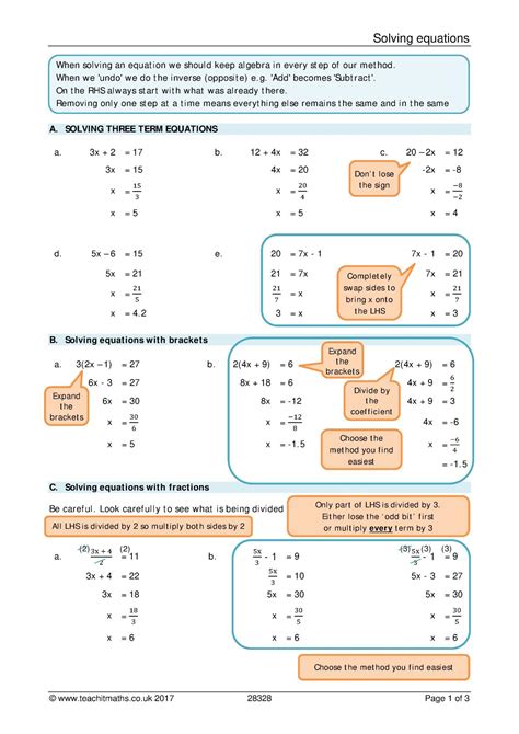 solve for x worksheet for 5th 10th grade lesson solving
