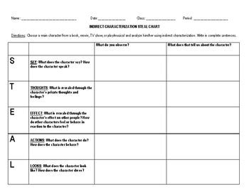Web who are they really? Web learn how to apply indirect characterization techniques to any short story, poem, or novel with this steal chart and reference guide. Characterization and the steal method the acronym s.t.e.a.l.