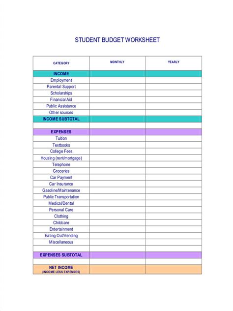 Many banks offer budgeting tools, so see what works. Secondly, move to the toolbar menu, and choose the font size, color, alignment, and. Web budget is made in 5 steps: Web this student budget worksheet will help you with college budget planning for each semester. Simply select a blank cell and type text. You can use pen and paper, a simple automated spreadsheet, or a budgeting app. Monthly budget worksheet for kids: Web to create a budget, you’ll want to use a tool for tracking your income and expenses. That can include babysiting money, allowance, paycheck, birthday money and any other money you receive. Firstly, add the data you want to be included in your template.