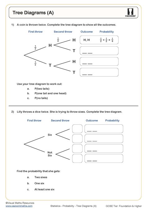 Probability With Tree Diagrams Worksheet