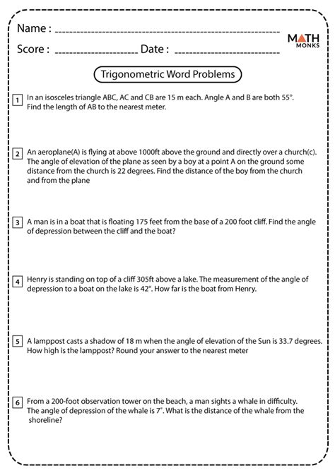 Trig Story Problems Worksheet. Draw and label the triangle.