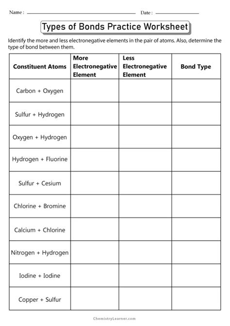 Types Of Bonds Worksheet. There are three types of bonds:. Web a chemical bond is formed when electrons are shared between two atoms.