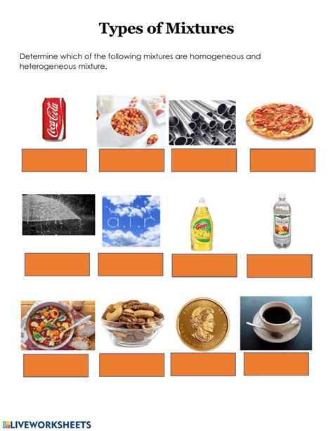 Web a worksheet for 6th grade science students to practice identifying and classifying different types of mixtures.