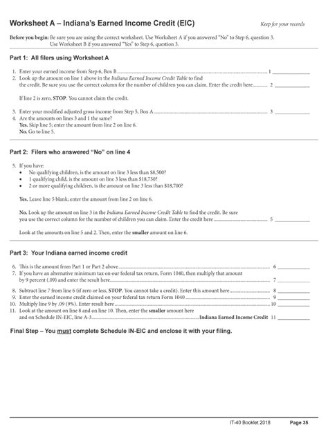 Worksheet A Eic. Look up the amount on line 1 above in the eic table in the instructions.