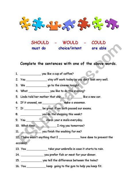 Web can, can't, could, couldn't, must, mustn't. Web using these would, could, should worksheets are a great way for students to practice and reinforce their understanding.